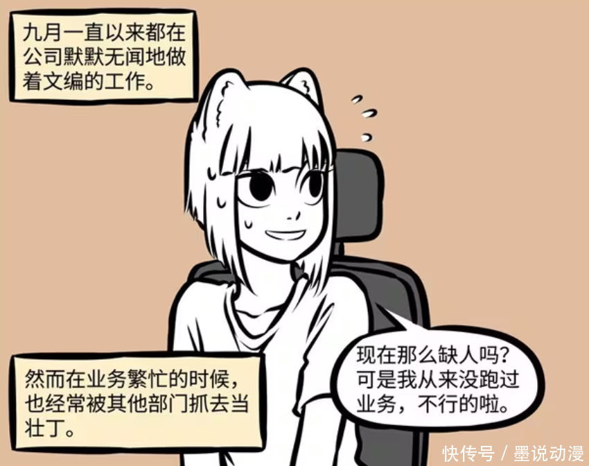 《非人哉》漫画版中,九月原本是当文编,在公司业务繁忙之时,她只能暂时转岗跑业务。在注册成为业务员之后广东股票配资公司,九月第一单就是帮小学生做数学题,谁能想到题目这么难,九月根本做不来,只能求助敖烈,也差点被差评。